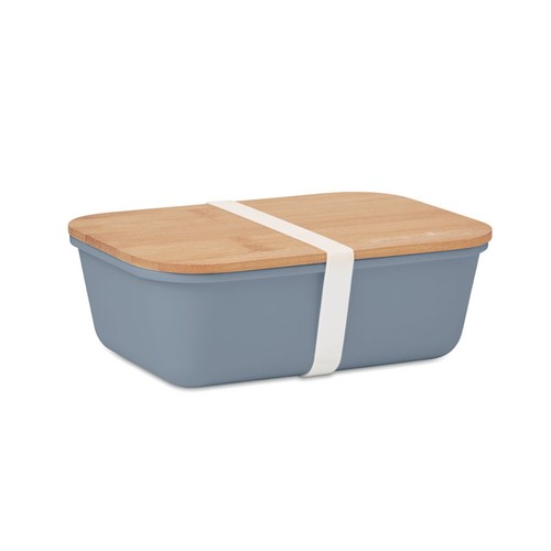 Boîte à lunch ou à sandwich en PP avec couvercle en bambou. Contenance : 1L. Le bambou est un produit naturel, et présente de légères variations de couleur, de décoration et de tailles.