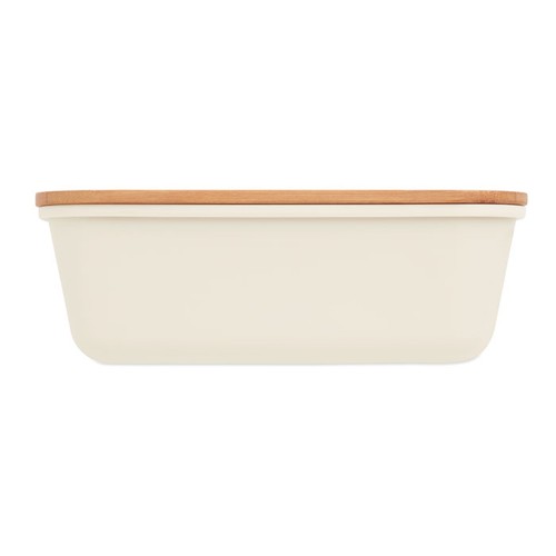 Boîte à lunch ou à sandwich en PP avec couvercle en bambou. Contenance : 1L. Le bambou est un produit naturel, et présente de légères variations de couleur, de décoration et de tailles.
