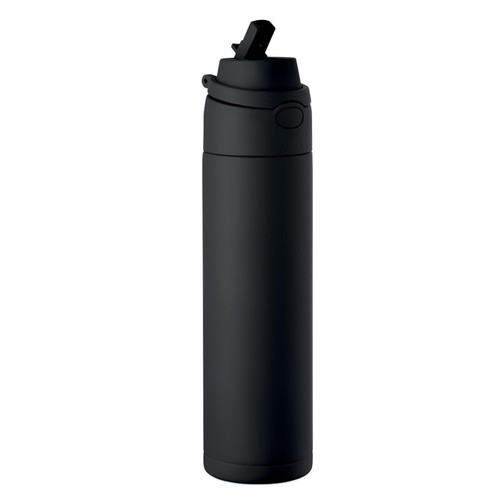 Bouteille en acier inox recyclé à simple paroi (90 % d'acier inox recyclé et 10 % d'acier inox). Comprend une paille 2- en-1 et un couvercle en PP avec poignée. Anti fuite. Capacité :650 ml.