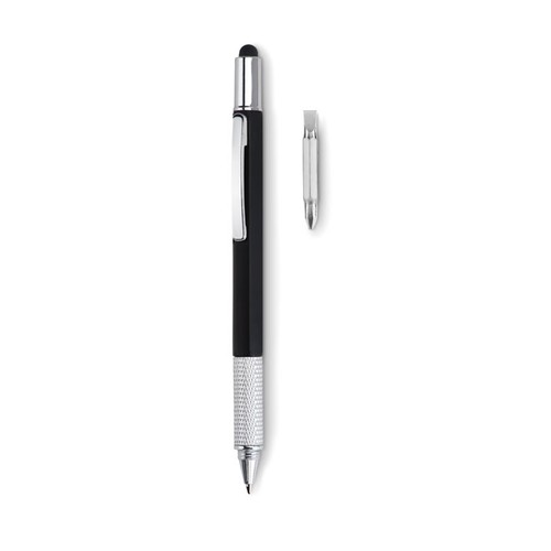 Stylo twist à niveau en ABS avec règle et stylet. Encre noire. Comprend également deux têtes de tournevis ( plat et cruciforme)