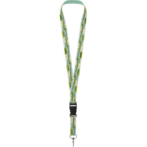 Tour de cou en PET recyclé avec marquage en sublimation sur l'ensemble de la surface, crochet en métal et séparateur en plastique recyclé. Le marquage peut être réalisé sur une ou sur les deux faces. Pour une impression sur les deux faces, vous pouvez choisir pour le marquage standard ou pour l'alignement des marquages. Permet d'accrocher un badge nominatif, une carte d’identité ou des clés. Disponible en 4 largeurs différentes : 10, 15, 20 et 25 mm.