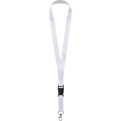 Tour de cou en PET recyclé avec marquage en sublimation sur l'ensemble de la surface, crochet en métal et séparateur en plastique recyclé. Le marquage peut être réalisé sur une ou sur les deux faces. Pour une impression sur les deux faces, vous pouvez choisir pour le marquage standard ou pour l'alignement des marquages. Permet d'accrocher un badge nominatif, une carte d’identité ou des clés. Disponible en 4 largeurs différentes : 10, 15, 20 et 25 mm.