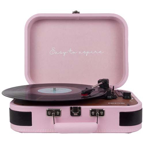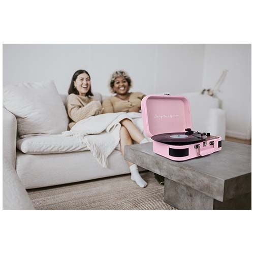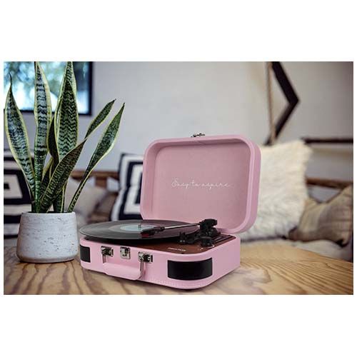 Tourne- disque vinyle et lecteur de musique avec Bluetooth® 5.0, USB, TF et radio FM. Numérisez le vinyle au format WAV via l'entrée USB et la fente TF. Il dispose d'une sortie audio RCA et est livré avec une paire d'écouteurs. Il comprend une aiguille rubis pour faire jouer délicatement des disques. Design en forme de mallette. Le tourne- disque peut être relié à un appareil mobile via Bluetooth® pour utiliser la fonction haut- parleur.