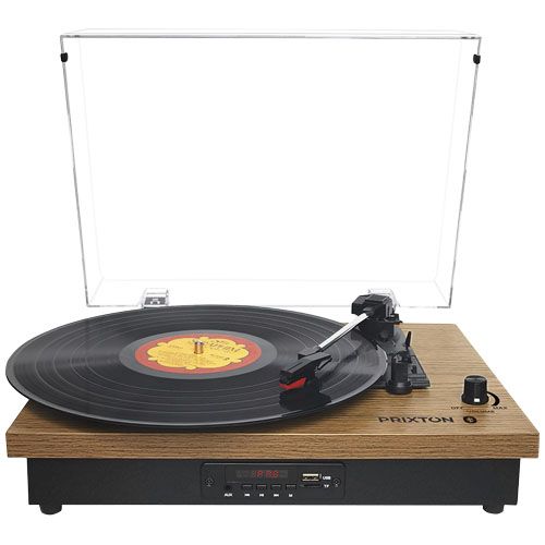 Tourne- disque Bluetooth® avec 2 haut- parleurs de 5 W chacun. Il lit les vinyles et les transforme au format WAV via la carte SD et les connexions USB. Il intègre également la technologie Bluetooth® 5.0 pour lier les appareils et lire de la musique. En outre, il joue via USB, carte SD et radio FM. Il dispose de 2 sorties audio RCA et d'un casque. Le tourne- disque possède un couvercle anti- poussière transparent et comprend une aiguille à rubis. Fabriqué en bois MDF et en matériau plastique avec une couleur de grain de bois. Un couvercle transparent anti- poussière est inclus. Vitesse de 33,3/45/78 tours/min.