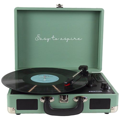 Tourne- disque vinyle et lecteur de musique avec Bluetooth® 5.0, USB, TF et radio FM. Numérisez le vinyle au format WAV via l'entrée USB et la fente TF. Il dispose d'une sortie audio RCA et est livré avec une paire d'écouteurs. Il comprend une aiguille rubis pour faire jouer délicatement des disques. Design en forme de mallette. Le tourne- disque peut être relié à un appareil mobile via Bluetooth® pour utiliser la fonction haut- parleur.