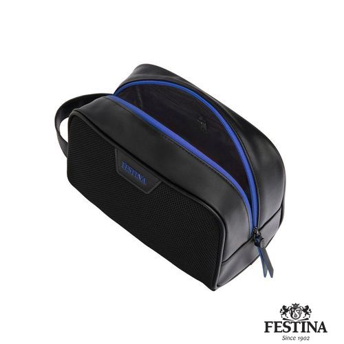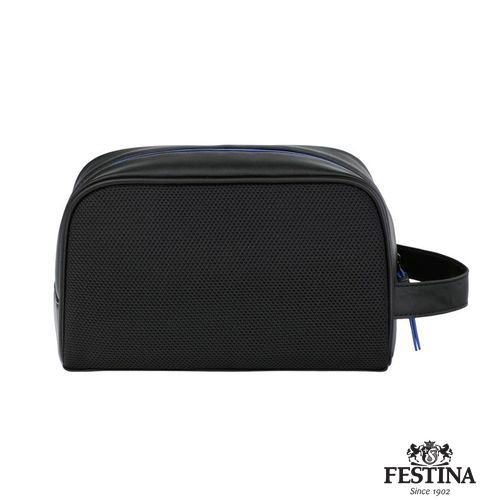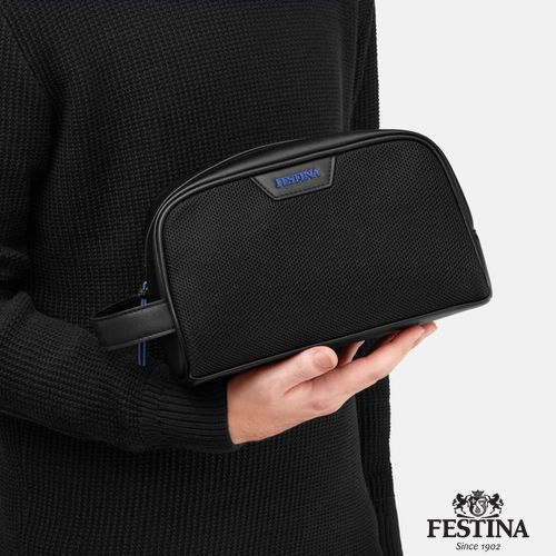 La pochette à cosmétiques "Black Edition" de Festina est une fusion parfaite entre design épuré et praticité. Fabriquée en cuir végétal noir mat, elle présente des accents innovants en maille qui lui confèrent une esthétique moderne, inspirée par l'activité physique. Légère mais résistante, cette pochette est conçue pour être facilement transportable, ce qui la rend idéale pour organiser ses affaires en déplacement. Le logo, la fermeture éclair et les bords de la tirette présentent des accents bleu vif qui créent un contraste vibrant avec la base noire minimaliste. Ces touches audacieuses insufflent une énergie dynamique au design tout en conservant le style épuré et raffiné caractéristique de Festina. Chaque détail témoigne d'une fabrication soignée, reflétant l'engagement de Festina en faveur de l'excellence et de la modernité. Compacte, polyvalente et élégante, cette pochette allie fonctionnalité et modernité.