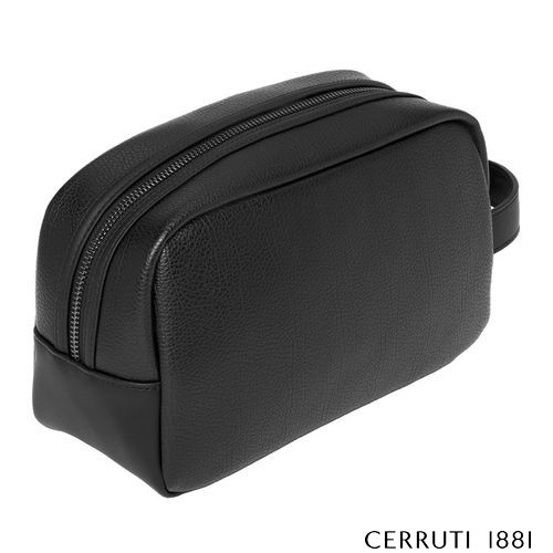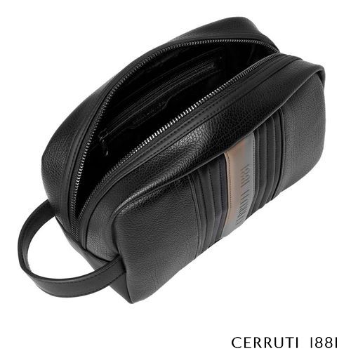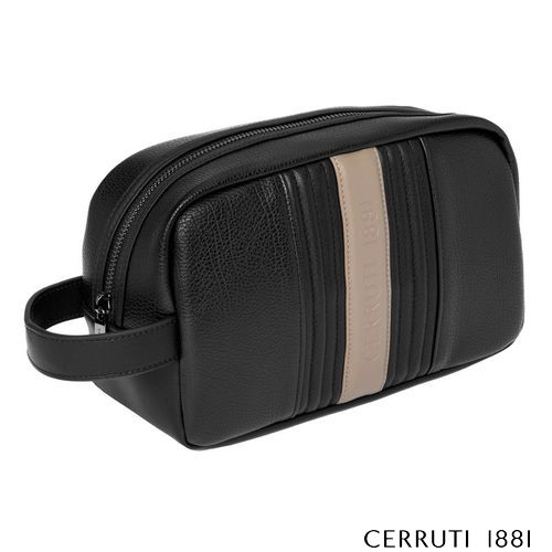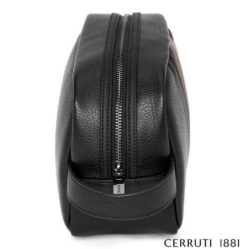 La ligne de voyage CERRUTI 1881 "Delano" joue sur les contrastes de couleurs et de textures, avec un cuir végétalien (PU) magnifiquement texturé et une bande centrale beige luxueusement embossée du logo CERRUTI 1881.