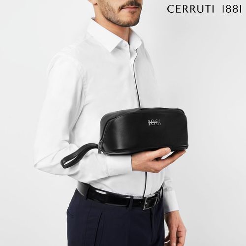 La pochette à cosmétiques "Irving" est luxueuse, compacte et simple. Fabriqué dans un matériau magnifiquement texturé et orné de la nouvelle plaque de signature CERRUTI 1881, sa forme est non seulement originale, mais aussi très pratique pour l'organiser à l'intérieur d'un sac de week- end. Il comporte également une dragonne.