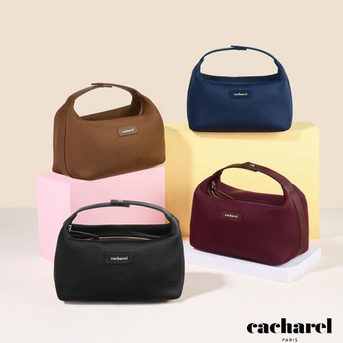 La pochette "Joséphine" est l'accessoire cosmétique idéal pour les voyages. Conçue dans une maille légère et innovante, elle assure praticité et facilité d'utilisation. Les accents dorés et les garnitures, y compris la signature iconique "Cacharel", réchauffent la palette de couleurs déjà riche et apportent la touche finale de luxe. La pochette "Joséphine" est disponible en quatre couleurs : noir, camel, bordeaux et marine.