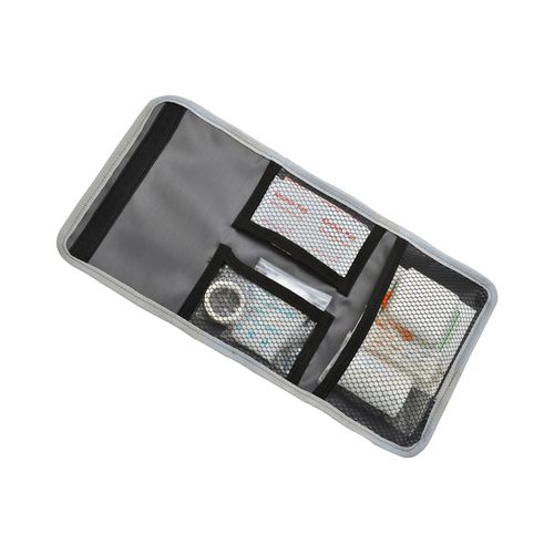 - Elégante trousse d'urgence en tissu gris chiné.