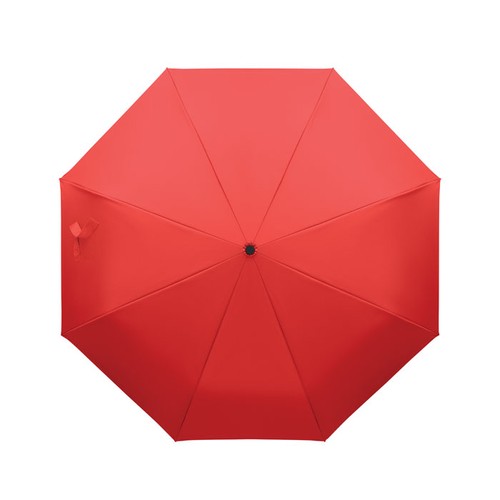 Parapluie tempête pliable 21'' avec mât et baleines en fibre de verre entièrement plaquée noir pliables en 2 sections. Panneaux en 190T RPET. Poignée mousqueton en forme de D avec finition en caoutchouc. Ouverture et fermeture automatique. Pochette incluse.