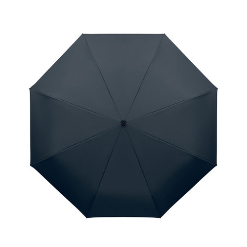 Parapluie tempête pliable 21'' avec mât et baleines en fibre de verre entièrement plaquée noir pliables en 2 sections. Panneaux en 190T RPET. Poignée mousqueton en forme de D avec finition en caoutchouc. Ouverture et fermeture automatique. Pochette incluse.