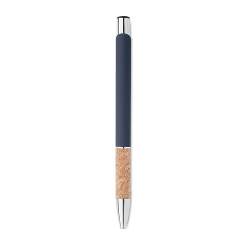 Stylo à bouton poussoir en aluminium avec grip en liège. Encre bleue.