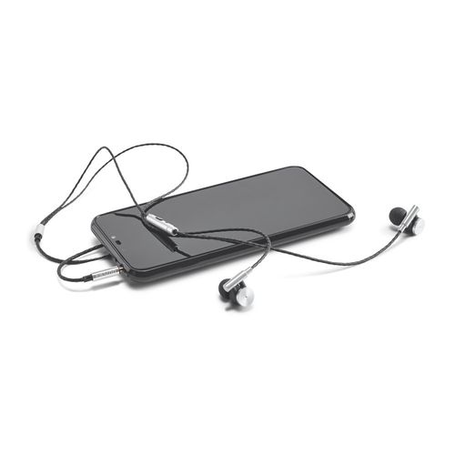 Écouteurs filaires au design moderne qui se distinguent par leur finition métallique sur les différents détails du produit. Ils sont dotés d'un microphone intégré qui vous permet de répondre aux appels.Matériau: métal et ABSCaractéristiques: bouton pour répondre aux appels et connexion à la liste de lecture de votre appareil mobileInclus: câble jack 3'5 mmLivraison: boîte cadeau 20 x 18 x 20 mm | Boîte: 88 x 97 x 45 mm