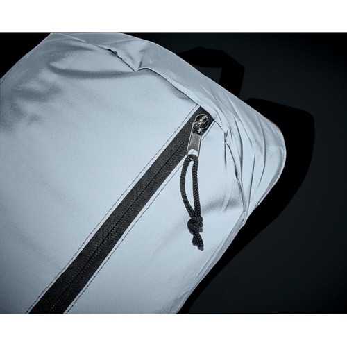 Sac à dos avec le devant en polyester hautement réfléchissant, une poche extérieure zippée et pour plus de confort une partie arrière rembourrée en polyester 600D.
