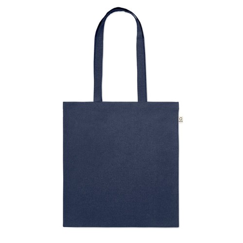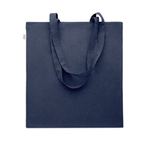 Sac shopping en coton recyclé pré- consommation (70 % coton recyclé et 30 % RPET) avec anses longues. 140 gr/m². Cet article peut rétrécir après avoir imprimé.