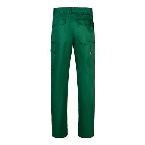 Pantalon multipoches en sergé (200g/m²), en coton (35%) et polyester (65%). Avec ceinture élastiquée et six poches (2 poches françaises, 2 poches à soufflet latérales et 2 poches à soufflet arrière). Taille: 34, 36, 38, 40, 42, 44, 46, 48, 50, 52, 54, 56, 58, 60, 62, 64