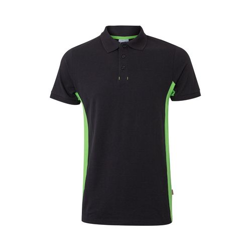Polo en piqué bicolore (180g/m²), manches courtes, en coton (60%) et polyester (40%). Avec système de fermeture à boutons, col et bas de manches côtelés. Côtés, patte de boutonnage en couleur contrastée. Taille: XS, S, M, L, XL, 2XL, 3XL