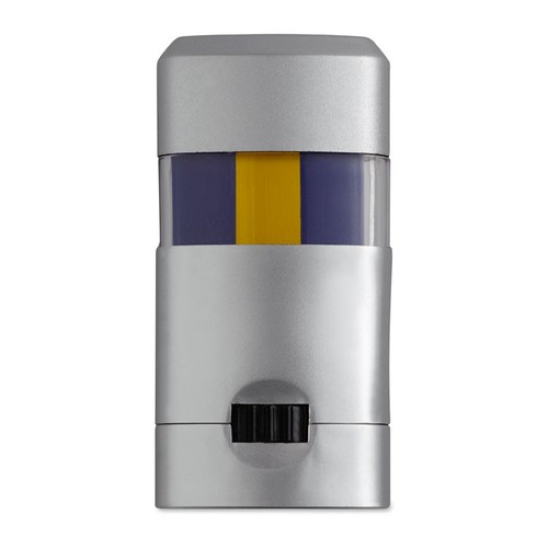 Bâtonnet de maquillage- drapeau présenté dans une boite argentée, avec fenêtre transparente au milieu.