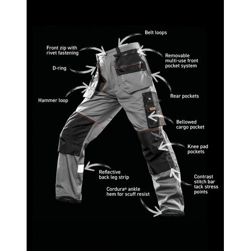 - Poches cargo et arrières, porte- marteau, D- ring