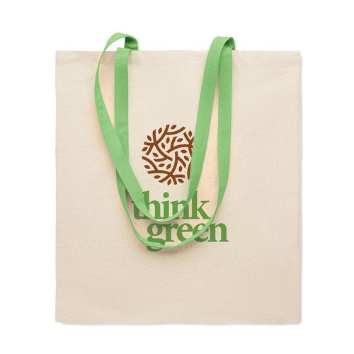 Sac à provisions avec de longues anses colorées en coton. 140 gr/m². Ce cabas est parfait pour les courses quotidiennes ou d'autres activités de shopping. Il est disponible avec des poignées de différentes couleurs. Portez le sac sur votre épaule lorsqu'il est lourd et pour garder les mains libres. Poids maximum supporté : 2,5 kg.
